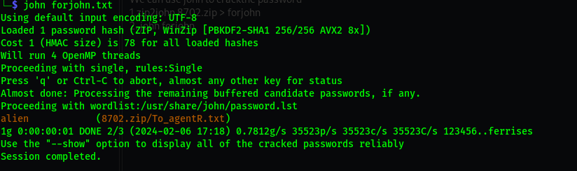 zip2john 8702.zip > forjohn