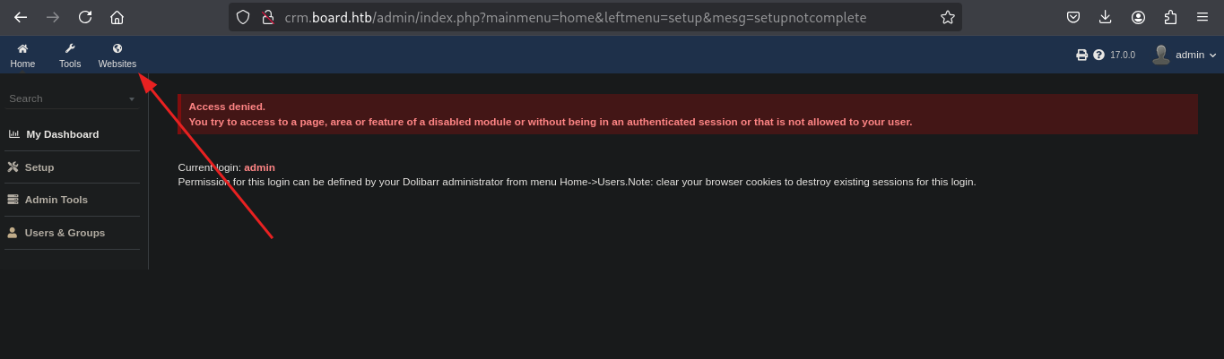 We also got the version no Dolibarr 17.0.0 A quick search gets us the default credentials.
