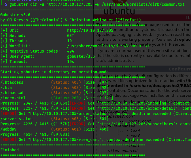 gobuster dir -u http://10.10.127.205 -w /usr/share/wordlists/dirb/common.txt
