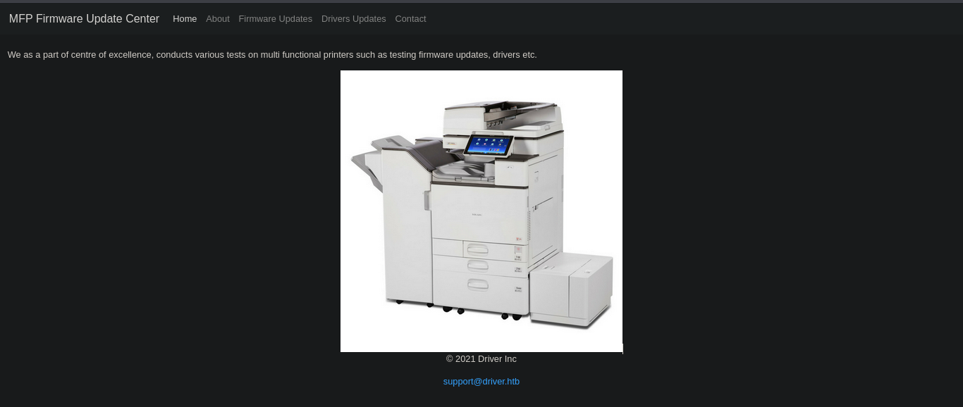 We do get the email format support@driver.htb will also add driver.htb to our /etc/hosts
