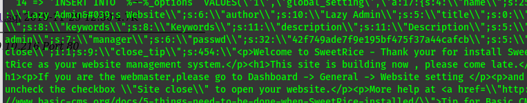 password = 42f749ade7f9e195bf475f37a44cafcb\