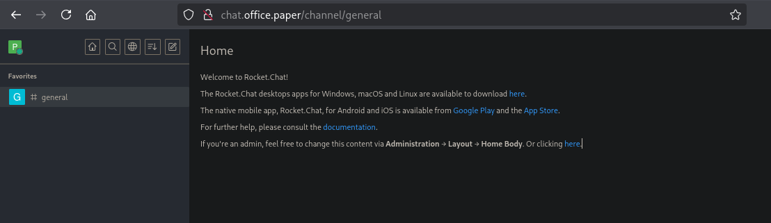 We first add chat.office.paper to /etc/hosts then visit the site.
